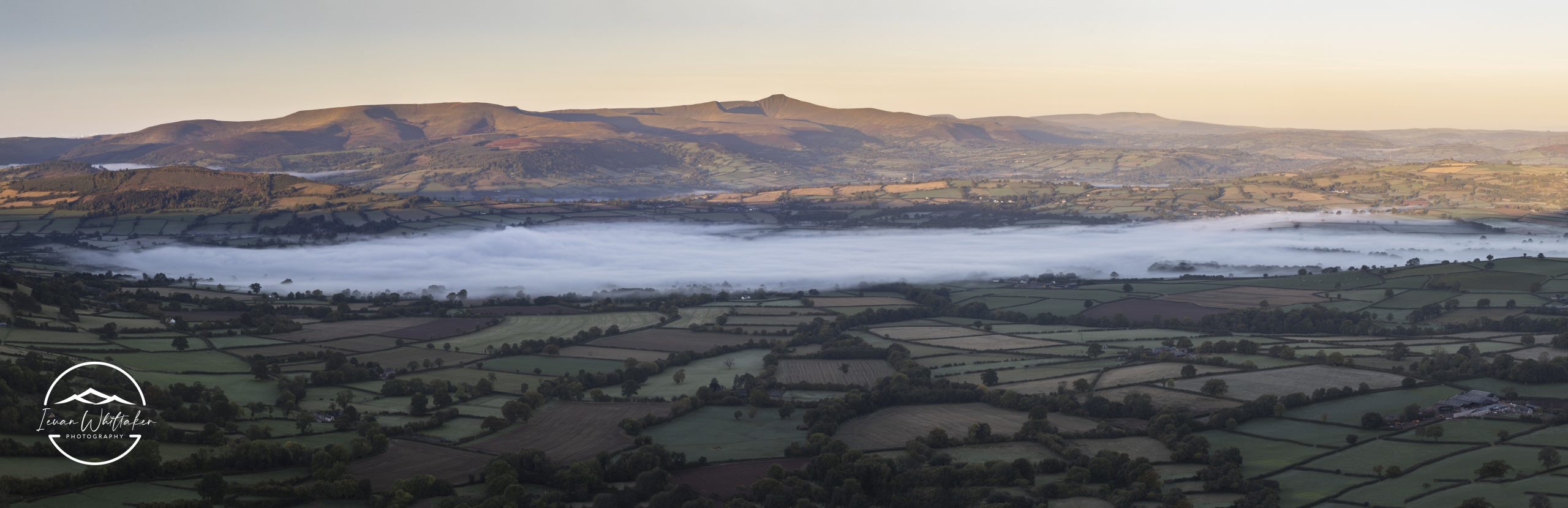 Pen y Fan and Cribyn on a late Autumn morning rising above the calm sweeping fields