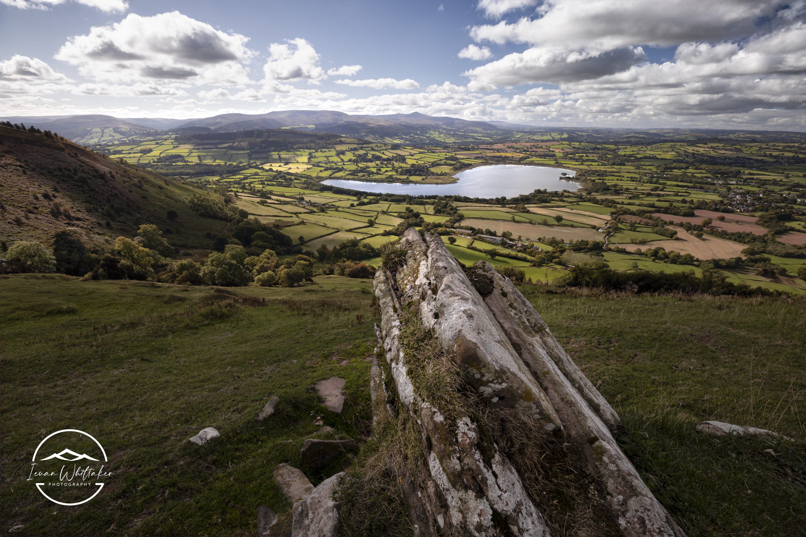 Llangorse Lake and the Brecon Beacons in background
